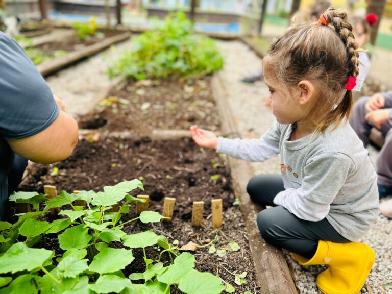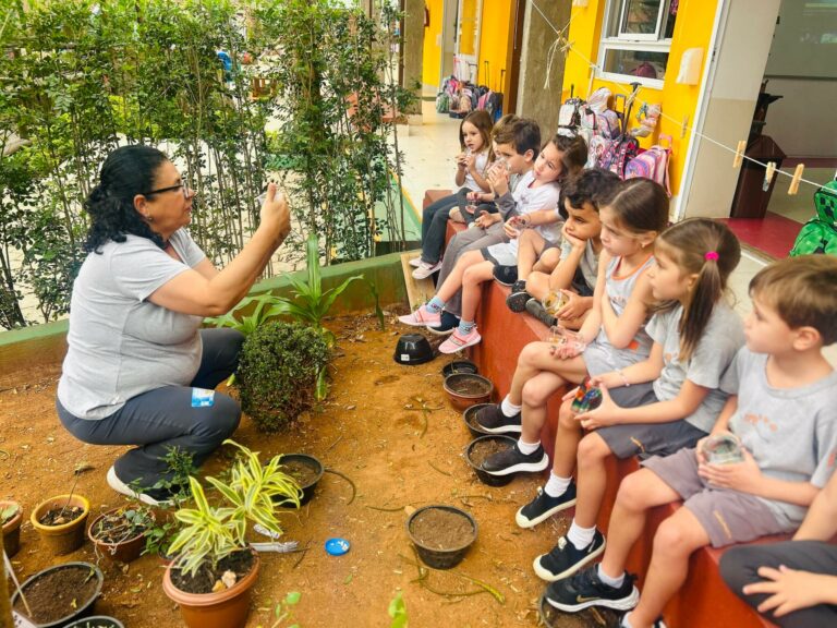 Quem passa pelo quintal da Casinha Pequenina pode nem imaginar o que está acontecendo, bem debaixo da terra: um trabalho silencioso, mas cheio de vida. As crianças dos Grupos 3